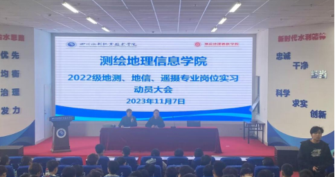 为加强学生实习管理,引导学生做好实习准备,11月7日下午,测绘地理信息学院在我校图书馆学术报告厅召开了2022级地测、地信、遥摄专业岗位实习动员大会。学院院长陈锐、副院长李开伟、2022级全体实习指导老师及辅导员老师出席本次会议,会议由副院长李开伟主持。